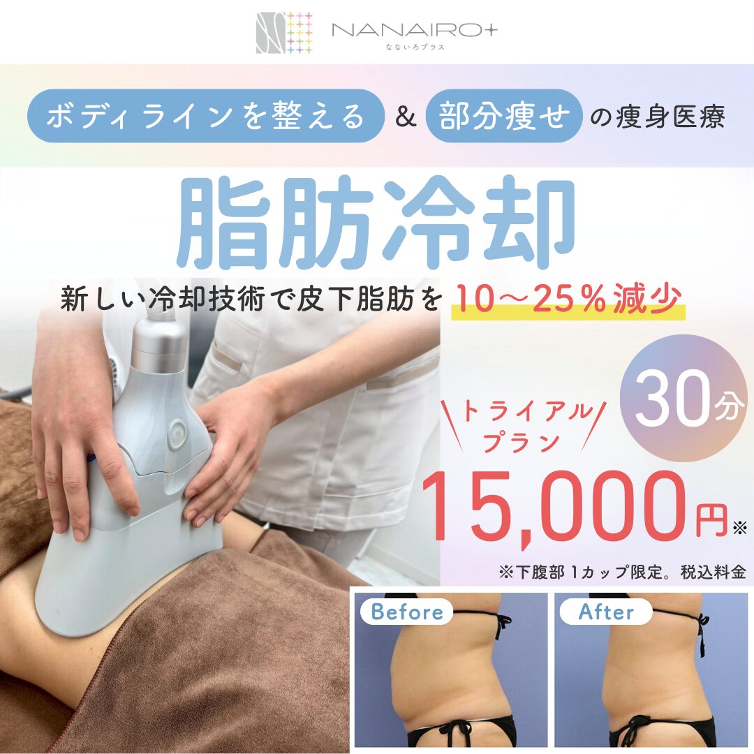 脂肪冷却は体重減少を目的とした治療ではなく、ボディラインを整える痩身治療です。わかりやすい表現をすると「部分痩せ」(body sclupting)治療です。吸引し、冷却した部位に効果を発揮しますので、肥満が強いと冷却が必要な部位が多くなります。肥満度が強い人(目安 BMI 30以上)は、並行してダイエットを推奨します。なないろクリニックの「メディカルダイエット」をご検討ください。安全性を考慮し、効果のあるダイエットを追求しています。