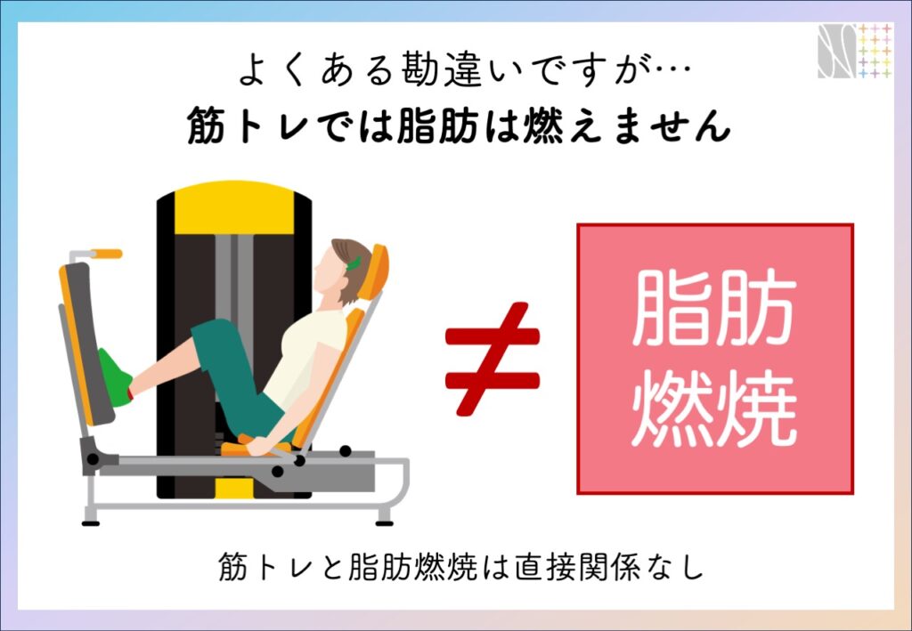 脂肪細胞内にはトリグリセリド(中性脂肪)が蓄積されています。トリグリセリドはエネルギーとして活用されるので、脂肪細胞はエネルギータンクような存在です。わたしたちは、エネルギーが不足すると蓄えたトリグリセリドを分解し、エネルギーとして利用(燃焼)しますが、脂肪燃焼は全身に分布している体脂肪で行われるため、特定の部位の脂肪を燃やすことは不可能です。また、筋トレも同様で、負荷部位の筋肥大は生じますが、特定の部位の脂肪を落とすことはできません。