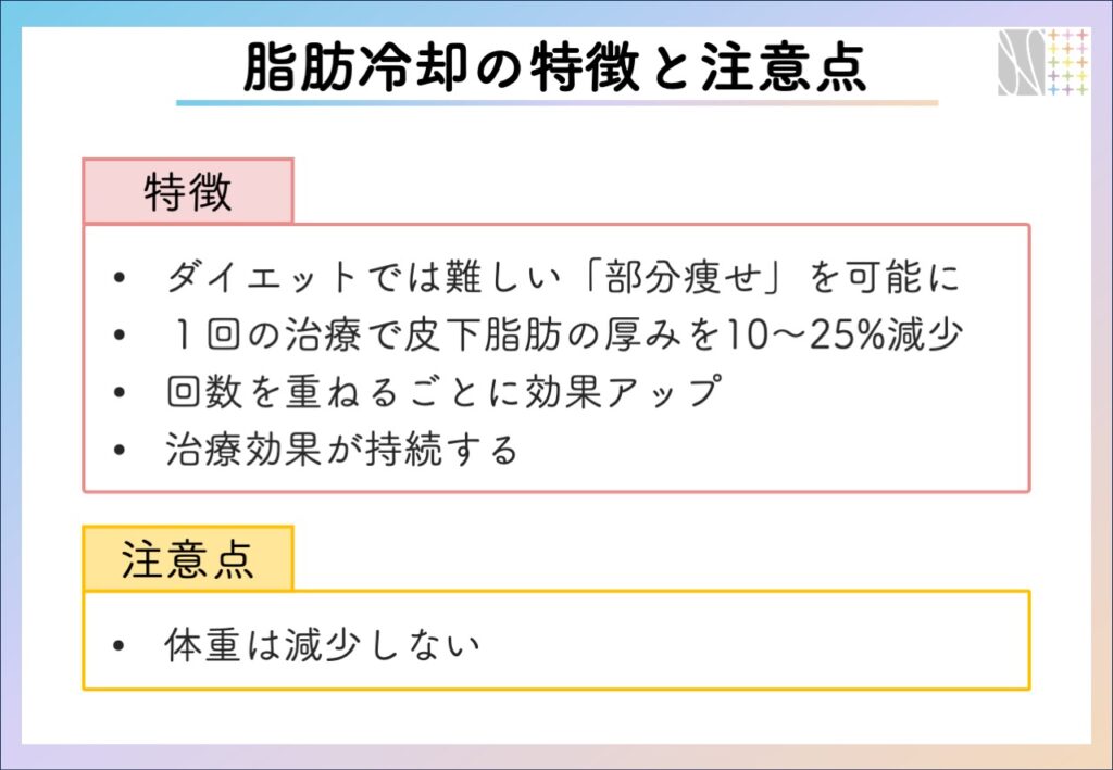 脂肪冷却の特徴(利点)を以下にまとめました。