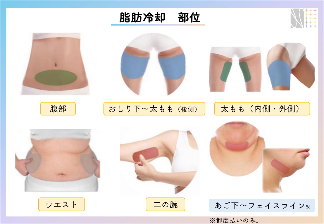 脂肪冷却は体重減少を目的とした治療ではなく、ボディラインを整える痩身治療です。わかりやすい表現をすると「部分痩せ」(body sclupting)治療です。吸引し、冷却した部位に効果を発揮しますので、肥満が強いと冷却が必要な部位が多くなります。肥満度が強い人(目安 BMI 30以上)は、並行してダイエットを推奨します。なないろクリニックの「メディカルダイエット」をご検討ください。安全性を考慮し、効果のあるダイエットを追求しています。