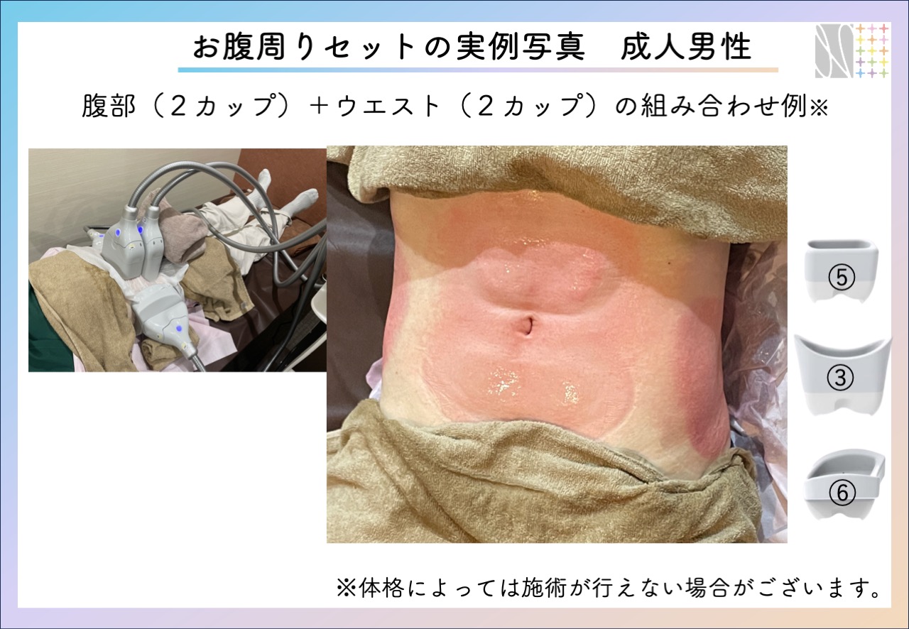 腹部(2カップ)+ウエスト(2カップ)を同時施術した症例写真です。