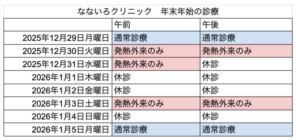 12/30、12/31,1/3は発熱外来のみの特別体制です。